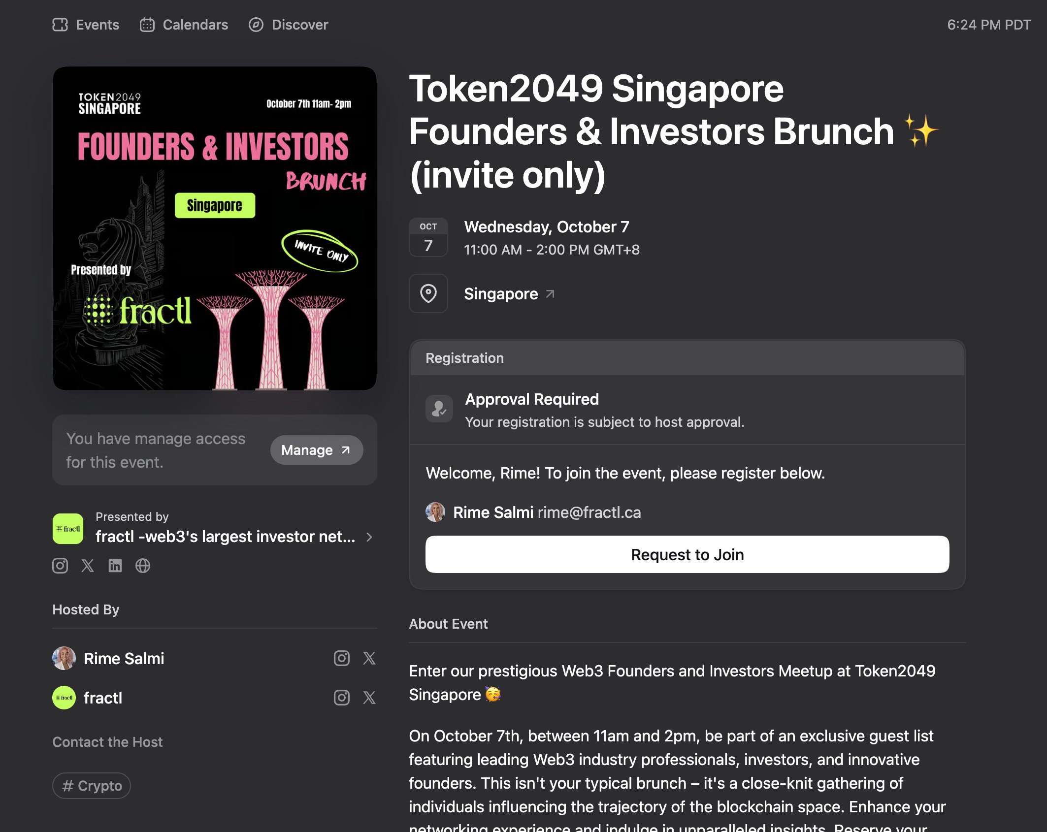 The Luma account we'll add as a host on the public event page — purely for brand visibility, not for approving guests (fractl handles all approvals).